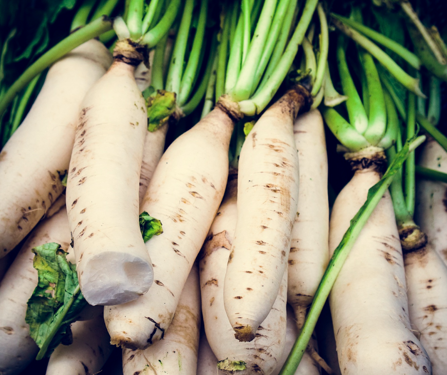 Mooli becomes fresher and sharper in winter, which is why it is used in parathas, pickles, salads and curries across India. It gives both the root and green leaves, making it a useful winter crop.