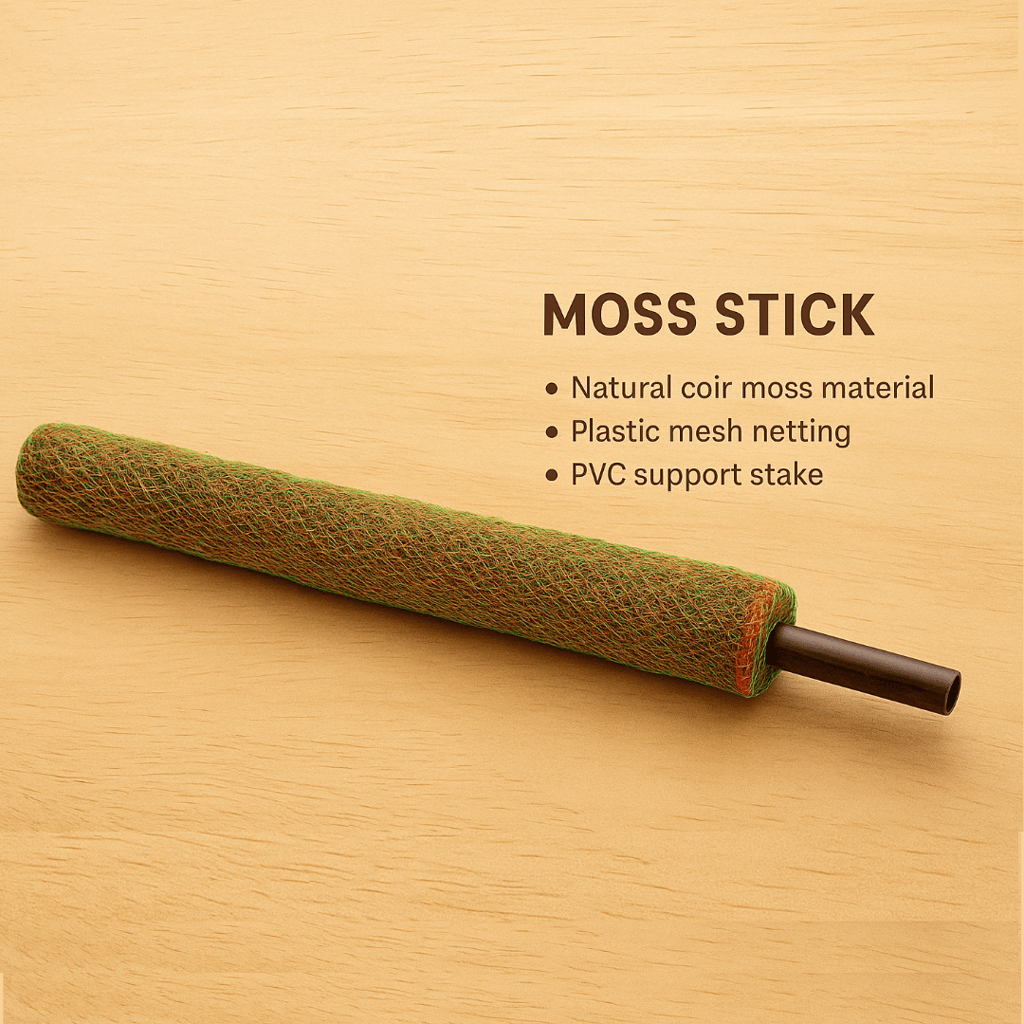 Moss Sticks are one of the most useful gardening tools for climbers in the garden. There are plants like money plants, philodendron berkins, etc, that need support while growing. They usually wrap themselves around these sticks filled with natural moisture-retaining capability and get the right nutrients. Moss sticks or Moss Poles blend well in the garden and are quite, which is very useful as decorative elements as well.